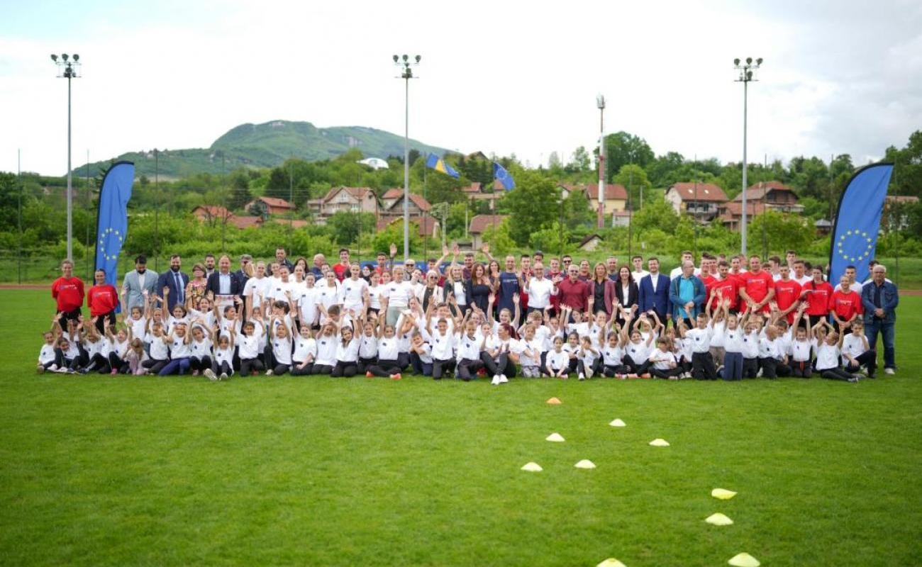 The Head of the EU Delegation and EU Special Representative in Bosnia and Herzegovina Ambassador Luigi Soreca officially launched Europe Day celebrations in Bosnia and Herzegovina today at a sports event in the Athletic Stadium in Zenica with hundreds of high school students, coaches, senior and junior athletes, local community representatives and some of Bosnia and Herzegovina’s most celebrated sports stars, including Amel Tuka, Elvir Krehmić and Hamza Alić.
